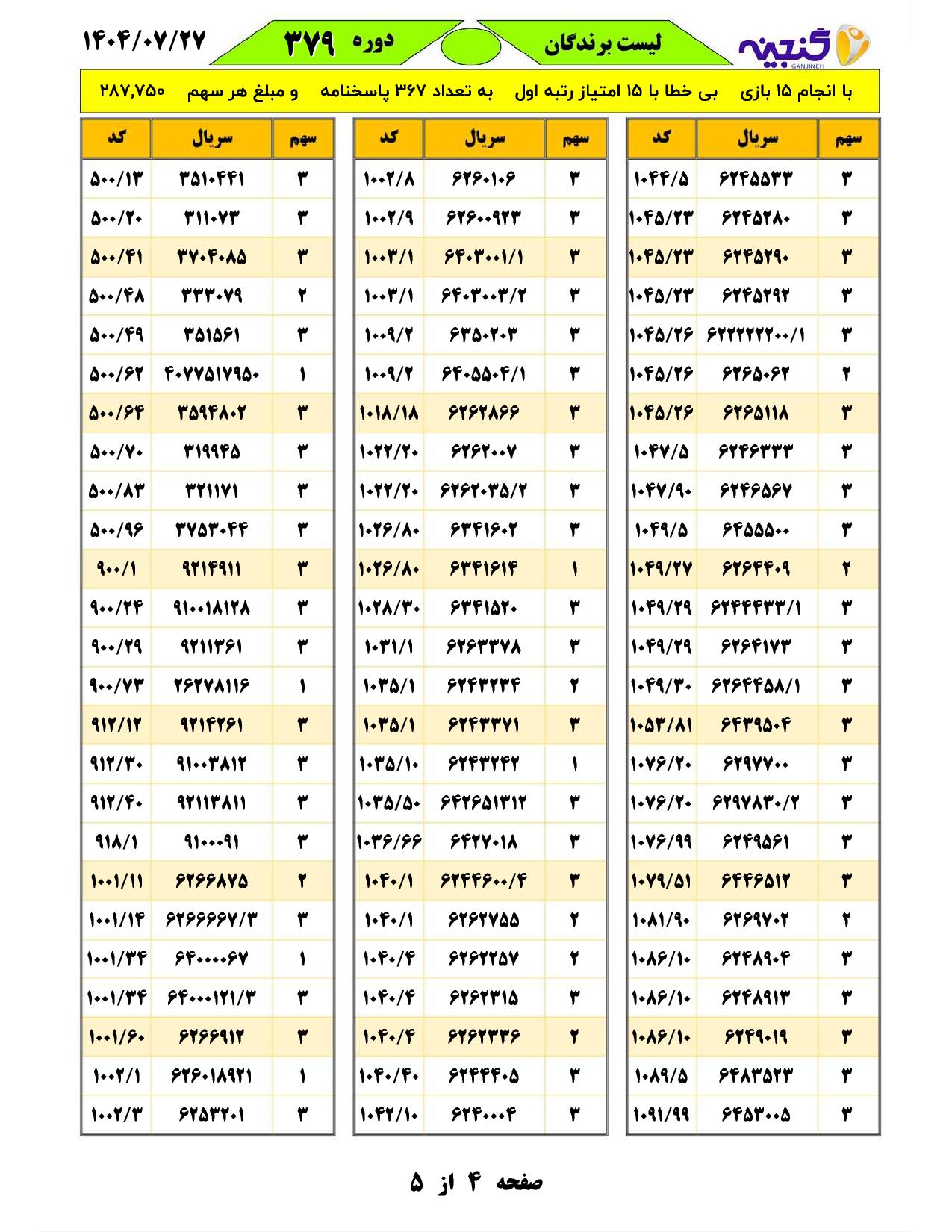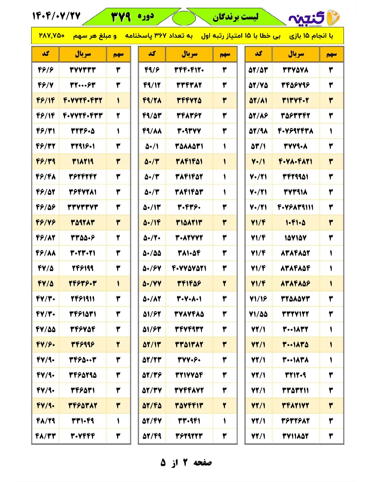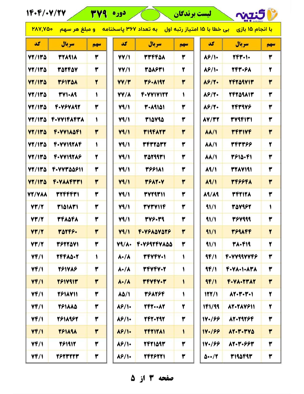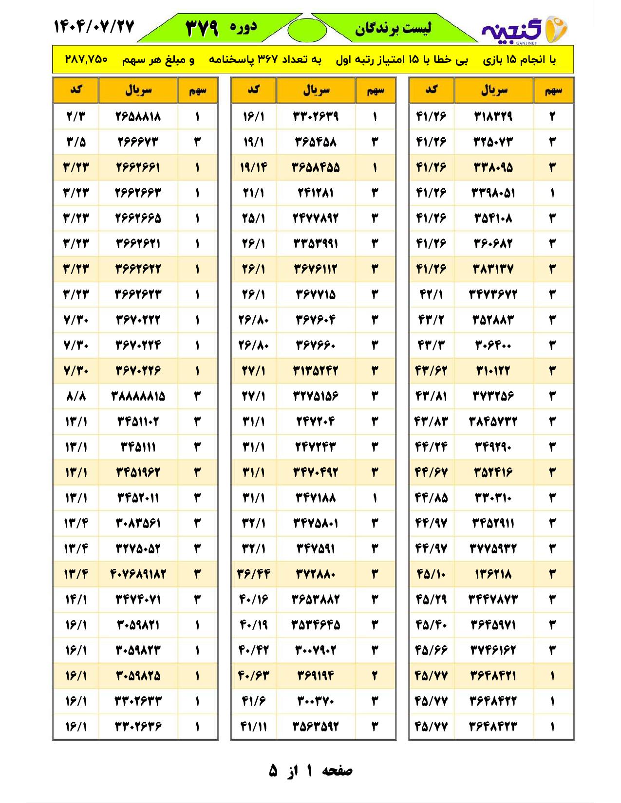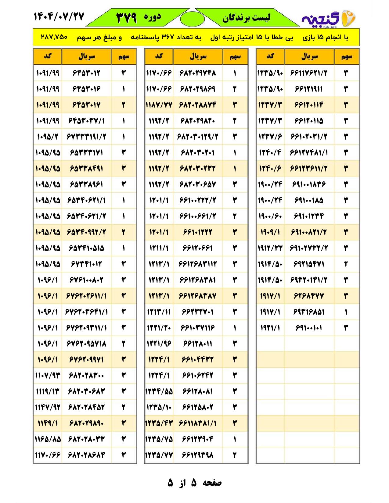 تعداد بازیهای انجام شده:15 بازیتعداد برندگان اول با امتیاز15 :367 فرم
