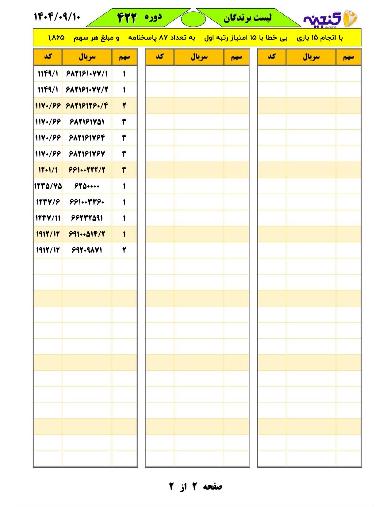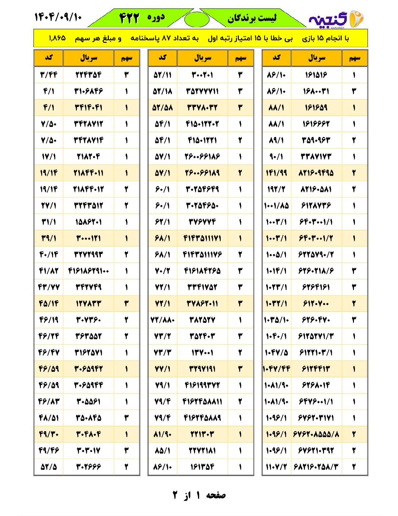 تعداد بازیهای انجام شده:15 بازیتعداد برندگان اول با امتیاز15 :87 فرم