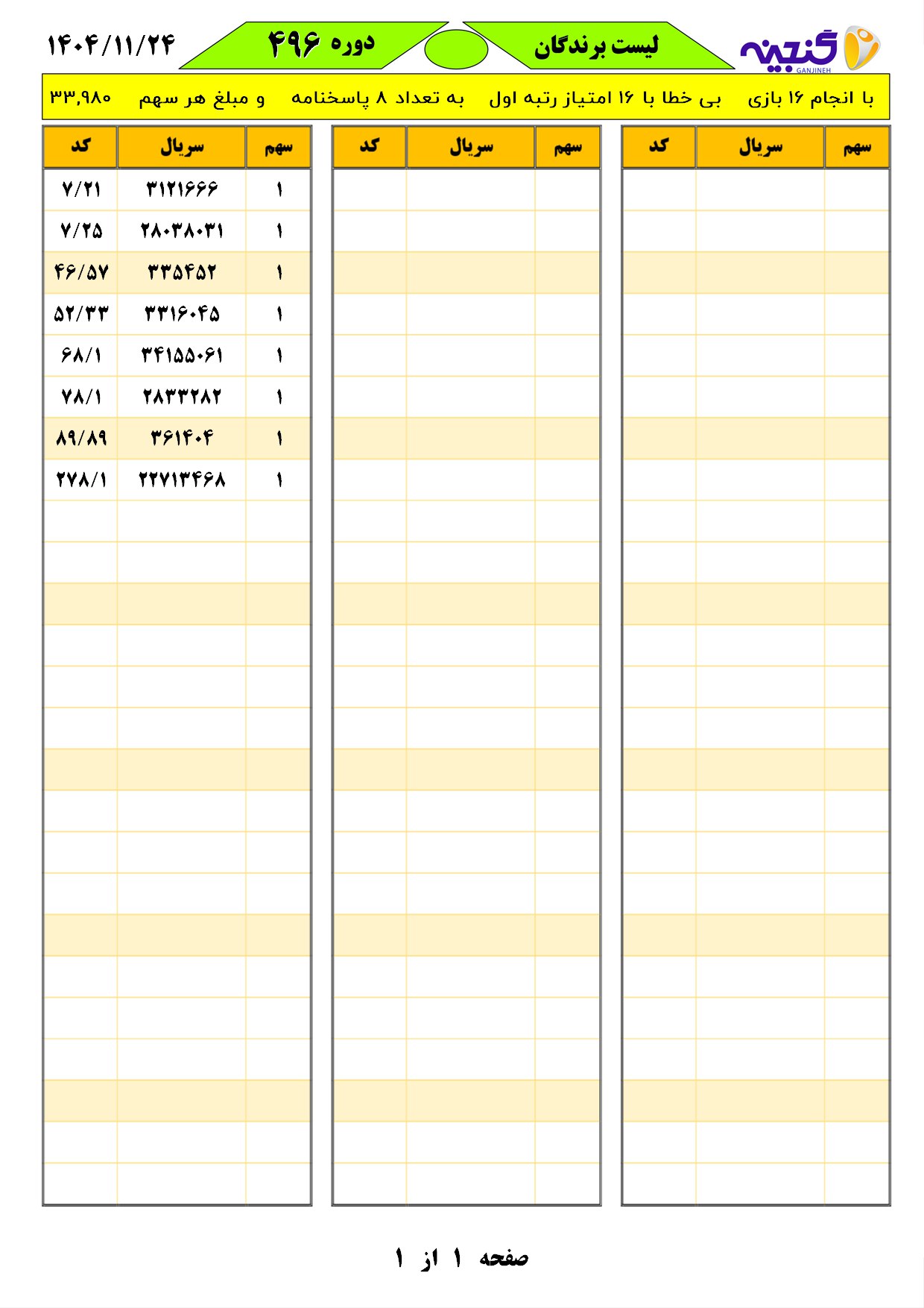 تعداد بازیهای انجام شده:16 بازیتعداد برندگان اول با امتیاز16 :8 فرمهدیه تقدیمی به هر فرم:33.980
